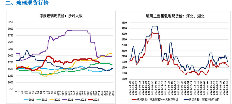 2、“保交楼”政策传导时间较长,近期玻璃终端需求恢复缓慢,地产资金链紧张问题依然存在,下游加工厂回款担忧情绪仍存,终端订单暂未有明显改善迹象。