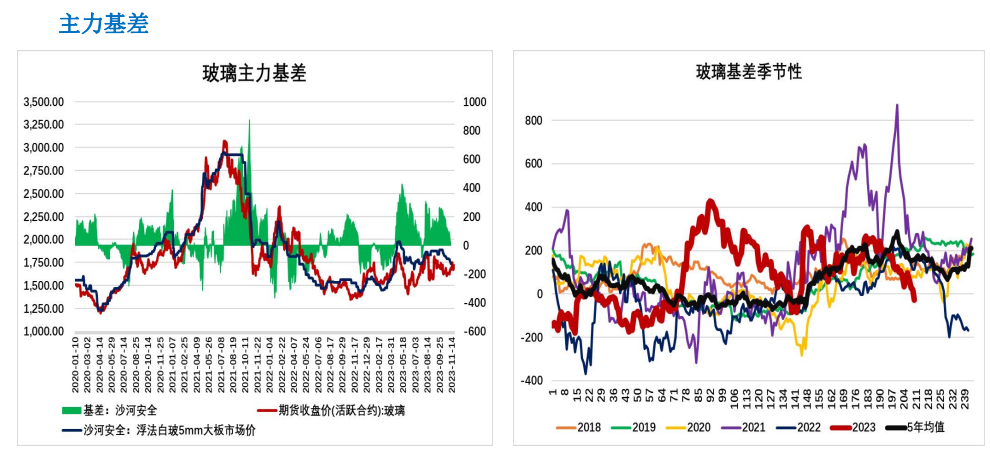2、基差:浮法玻璃河北沙河大板现货1736元/吨,FG2401收盘价为1752元/吨,基差为-16元,期货升水现货;偏空。